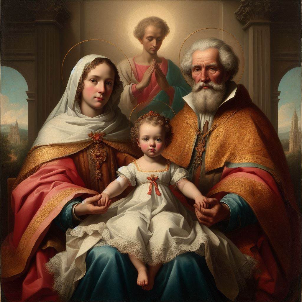 San Joaquín y Santa Ana fueron los padres de la Virgen María y los abuelos de Jesús, según la tradición cristiana. Sus nombres se conservaron gracias a los evangelios apócrifos, que narran su historia de fe y esperanza ante la esterilidad. Se les venera como modelos de santidad y de amor conyugal.