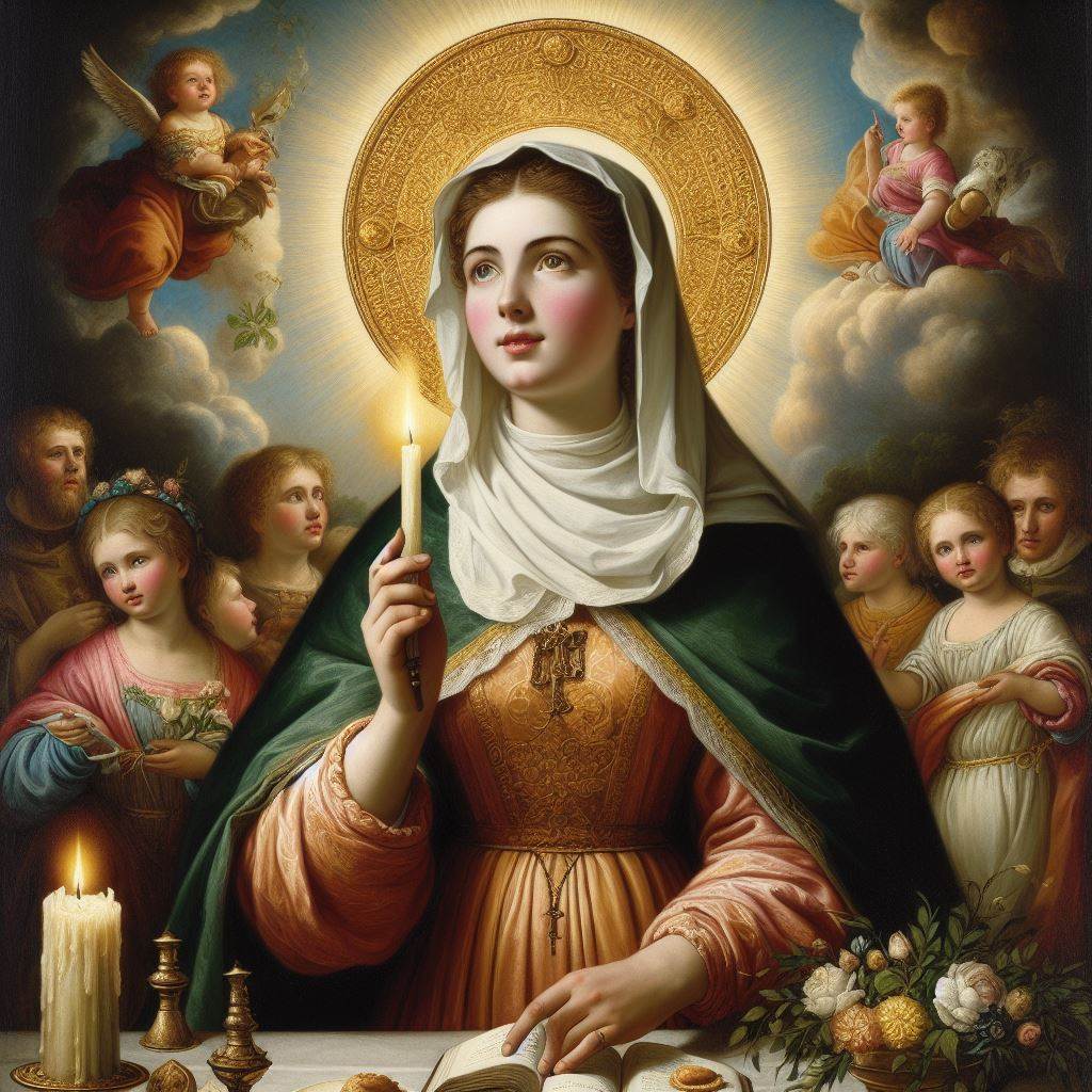 Santa María de la Cabeza fue la esposa de San Isidro Labrador, el santo patrón de Madrid. Según la tradición, nació en el siglo XI en Caraquiz, un pueblo de la provincia de Guadalajara, y vivió junto a su marido en la vega del río Jarama, donde ambos se dedicaron a la labranza. Fue una mujer virtuosa, humilde, trabajadora y devota, que sufrió la muerte de su único hijo, Illán, al caer en un pozo, pero que lo vio resucitar por la intercesión de Santa Maria de la Almudena. Tras la muerte de su esposo, se retiró a una ermita dedicada a la Virgen, donde cuidó de su imagen y de los peregrinos que acudían a venerarla. Murió hacia el año 1180 y sus restos fueron trasladados a Madrid en el siglo XVI, cuando se inició su proceso de canonización. Fue beatificada en 1627 y canonizada en 1697. Es la patrona de los abuelos, las amas de casa, los cocineros y los hoteleros, entre otros.
